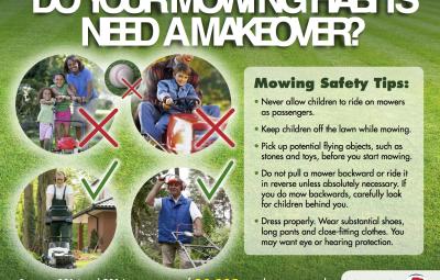 Riding mowers should meet the latest voluntary safety standards. But take extra precautions to prevent the most common hazard scenarios, blade contact and loss of mower stability. Make sure to keep children away while you are mowing.