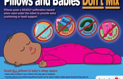 Babies can suffocate, get trapped in or fall from adult beds. The safest place for baby is a crib or play yard.