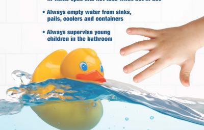 Children drown in bathtubs, buckets and pails, not just in pools or spas. Stay within arm’s reach when baby is in the bathtub and keep children away from buckets and pails you use for household chores.