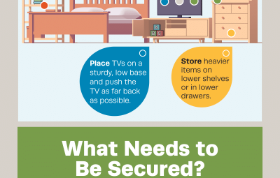 One child dies every two weeks when a TV, piece of furniture or an appliance falls on him or her. Anchor furniture to the wall or floor and place TVs on sturdy, low bases.