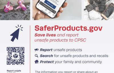 CPSC is a federal agency that protects the public against unreasonable risks of injuries and deaths associated with consumer products. If you've had a safety problem with a consumer product, contact us at SaferProducts.gov or our Hotline.