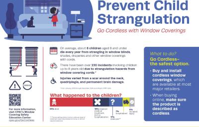 Remove hood and waist drawstrings from children’s jackets, sweatshirts and hoodies. Drawstrings can catch on items and cause a child to strangle.