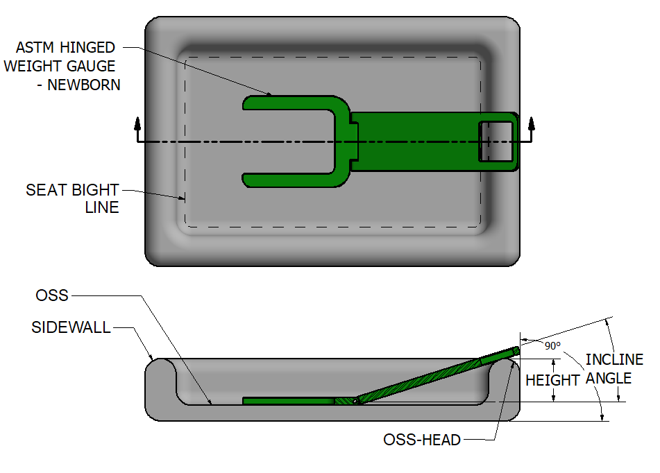 - Force to displace 1 inch of the occupant support surface, sidewall, and intersection of the sidewall and occupant support surface using the 3-inch diameter head probe must exceed 10.0 N