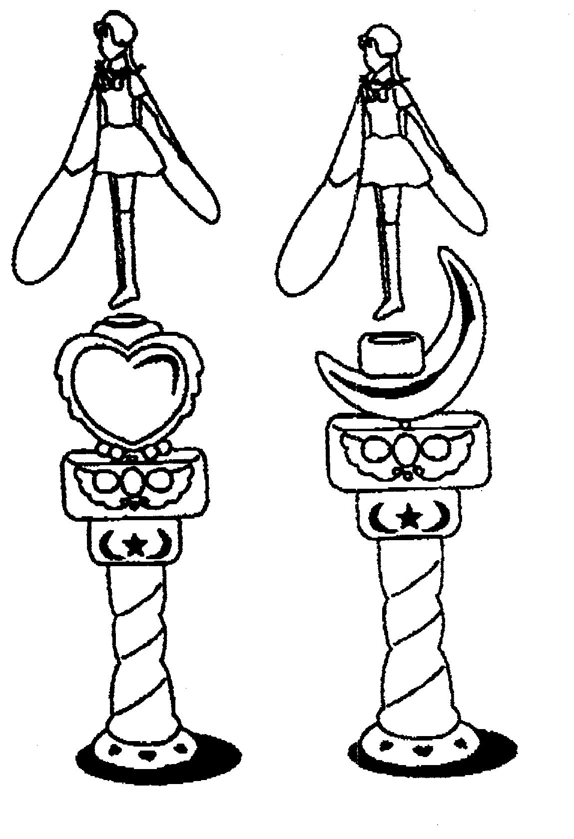 The Star Wonders dolls, measuring 6 inches tall, are made of plastic in black or white flesh tones. They have colorful wings attached to their arms. The dolls have blond and purple hair and wear white body suits with red, blue, gold or green skirts and boots. The dolls can be attached by their feet to a 7-inch "magical wand" launcher decorated with a moon or a heart. The Star Wonders dolls spin into the air when consumers pull a retractable string on the "magical wand" launcher. A plastic star with a smile face is on the end of the retractable string. The words, "Made in China," on the bottom of the "magical wand" launcher are the only identifying words on the product.