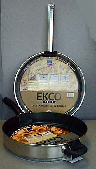There are two types of skillets being recalled: Eterna 12-inch stainless steel skillets and Endura 12-inch non-stick stainless steel skillets. The EKCO Eterna 12-inch stainless steel skillets have the following identification embossed on the bottom of each pan, "EKCO Eterna, EKCO Housewares, Inc., 18/10 Stainless Steel, Made in China." The EKCO Endura 12-inch non-stick stainless steel skillets have the following identification embossed on the bottom of each pan, "EKCO Housewares, Inc., 18/10 Stainless Steel, Made in China."