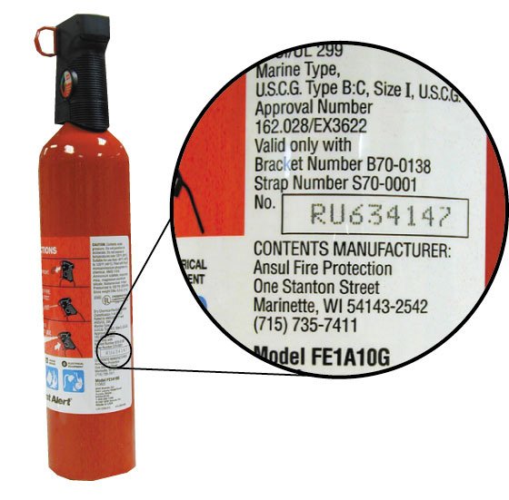 Only First Alert model FE1A10G with serial numbers beginning with: RH, RK, RL, RP, RT, RU, or RW are included in this recall. The serial number is located on the extinguisher's label, above the model number in a rectangular box. "First Alert" is written on the units' label and pressure gauge. The fire extinguishers are either red or white. Home centers, mass merchandisers, and hardware stores nationwide sold the fire extinguishers from September 1999 through September 2000 for between $9 and $15.