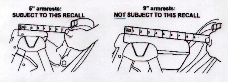 When the seat is reclined, the high chairs have a space between the armrest and backrest in which a child's head or arm can become entrapped. This can pose a risk of suffocation or injury to the heads or arms of young children.