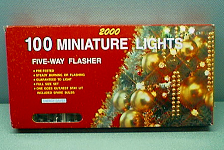 PRODUCT: Christmas Lights - Sun Sun Industries Inc., of Carlstadt, N.J., is recalling 12,000 sets of miniature Christmas lights. The recalled lights are sets of 100 miniature lights in various colors that are steady burning or flashing. The red box reads in part, "100 MINIATURE LIGHTS, MADE IN CHINA, IMPORTED BY SUN SUN INDUSTRIES, INC." A Christmas tree is on the box. The lights were sold in M&S Bargain Hunter stores throughout New York from October 2000 to December 2000 for about $2.