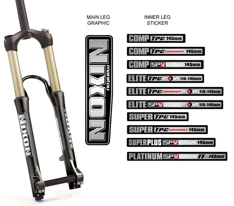 | Nixon | Comp, Platinum, Super and Super Plus 145 Suspension Fork Elite 115-145 Suspension Fork |