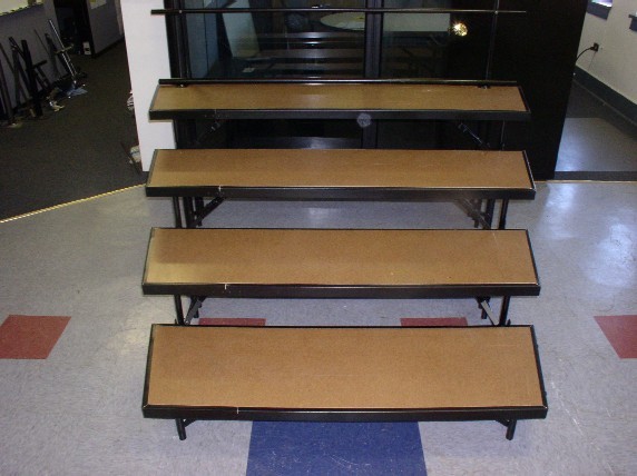 Choral risers equipped with an optional guard rail can tip over under certain loading conditions, which poses a risk of injury from falling from the risers.