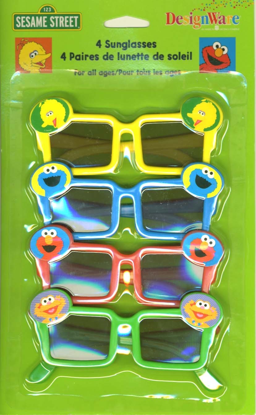 This recall involves DesignWare® child-size sunglasses with Sesame Street character decals. Sold in quantities of four, each package contains a yellow, blue, red and green pair of sunglasses. The bright green cardboard backer has the Sesame Street and DesignWare® logo on the front, and model number SUN-1219 on the back.