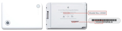 The recalled lithium ion batteries are used with the following computers: 12-inch iBook G4, 12-inch PowerBook G4 and 15-inch PowerBook G4. The recalled batteries include those with model numbers A1061, A1078 and A1079 and serial numbers that begin with HQ441 through HQ507 or 3X446 through 3X510. Consumers should remove the battery from the computer to view the model and serial numbers labeled on the bottom of the unit. No other PowerBook or iBook batteries are involved in this recall.