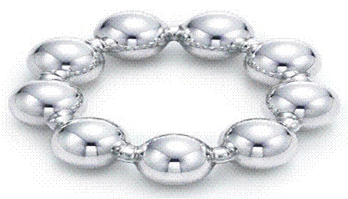 Description: The Paloma Rattle is a ring that is 2.5 inches in diameter. It consists of nine linked sterling-silver balls that contain small beads.