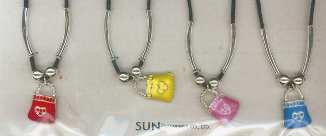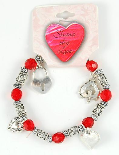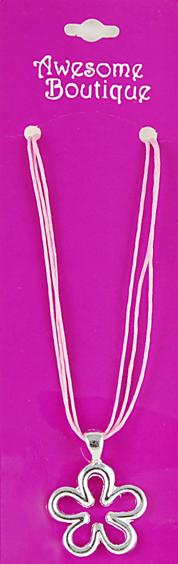 Description: The recalled metal necklaces and bracelets have silver-colored charms. Some also have colored beads. "Awesome Boutique" or "Share the Love" is printed on some of the jewelry's packaging. The jewelry includes a necklace with a metal flower-shaped charm that hangs from a pink cord, a metal heart charm bracelet, a metal heart angel charm bracelet with colored beads, a metal bracelet with four heart charms and ruby-colored beads, necklaces with painted hearts that hang from a cord, and necklaces with tiny purses in various colors.
