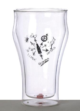 Description: This recall involves clear double-walled soda glasses sold in a bell-shape. The drinking glasses were sold in two sizes: 16 ounces and 22 ounces, and have various Coca-Cola® graphics printed on the glass.