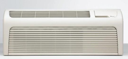 The recall includes 5.0 kW Amana-brand, Comfort-Aire-brand and Century-brand PTAC units with model numbers PTxxx3x50xx (Amana) and EKTxxx-150x (Comfort-Aire and Century), and serial numbers 0702112056 through 0804237539. The model and serial numbers are located on the control board plate found under the PTAC unit's front cover.