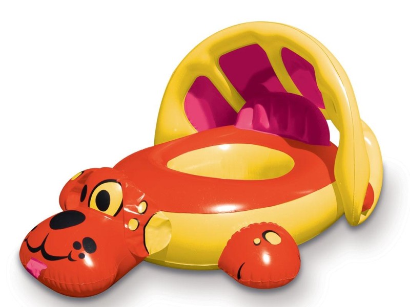 | Playful Puppy Sunshade Float | SA-3223/24 SA-3223/24TG SA-3228 SA-3227/28 | Red, yellow and pink inflatable float with dog appendages, yellow vinyl seat bucket and yellow/pink adjustable sunshade. |