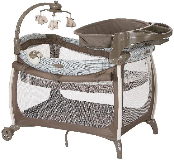 The play yards are portable and were sold with a bassinet attachment and a built-in changing station. Models included in this recall are 05025, 05026, 05037, 05088 and 05350. The model number is printed on a sticker on one of the support legs underneath the play yard. "Safety 1st" or "Eddie Bauer" are printed near the bottom of the fabric sides of the play yards.