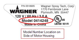 This recall includes the Wagner Control Spray Plus Model 0414248. This model number can be found on a white label located on the side of the motor housing. The following date codes are affected by this recall and can be found stamped on the bottom of the motor housing near the air hose connection: