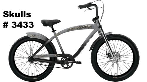 This recall involves three models: Red Star, Skulls and Cannibal chopper-style bicycles with the model names printed on the chain guard. Red Star has a black finish; Skulls bear a skull graphic and come in grey and black; and Cannibal bears a dragon graphic and comes in a black finish. Serial numbers are located on the bottom of the bicycle between the pedals. The recall involves the following models, SKUs and Serial Numbers: