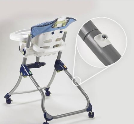 Children can fall on or against the pegs on the rear legs of the high chair resulting in injuries or lacerations. The pegs are used for high chair tray storage.