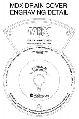 Description: The recall involves one pool and spa drain cover, Model MDX, (sold after 12/18/2008). Markings on the cover will indicate MDX logo, a maximum flow rating of 64 GPM, ASME A112.19.8 - 2007, VGB 2008 and include the USPC Shield.