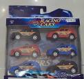 Description: The products are sold in packages of four or six toy cars which are painted in silver, black or blue with red stickers with "super," "max" and "racing" labeled on the top and sides of the cars. The 4" plastic car sets have item numbers "43835" and "43836" printed on a white label on the back of the cardboard packaging. "Gallop X" or "RACING CARS" is also printed on the product packaging.