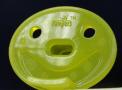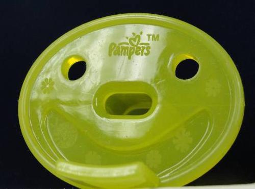 Description: The pacifier comes in yellow, pink or blue colors and is made of silicone. Only "Stage 1" pacifiers are recalled. "Stage 1" and "Ortho" or "Bulb" are printed on the package. The recalled pacifiers have an oval-shaped mouth guard and "Pampers" molded on to the handle side of the mouth guard. The product comes two per package.