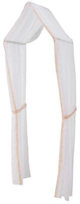 White canopy with golden swirl decorations printed on the edge of the fabric |