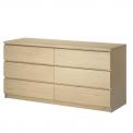 The MALM chests and dressers are constructed of particleboard or fiberboard and are white, birch (veneer), medium brown, black-brown, white stained oak (veneer), oak (veneer), pink, turquoise, grey, grey-turquoise, lilac, green, brown stained ash (veneer), and black. A 5-digit supplier number, 4-digit date stamp, IKEA logo, country of origin and “MALM” are printed on the underside of the top panel or inside the side panel.