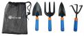 This recall involves Active Kyds children’s toy shovels and garden tool sets. The fiberglass toy shovels were sold in yellow and black. The children’s garden tool set has blue handles with orange caps and black painted steel ends. It includes four tools: a hand shovel, hand fork, transplanter and cultivator. The tools are sold with a pull string black mesh bag with the Active Kyds logo printed in white.