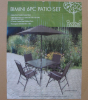 The recall includes Nantucket Distributing folding chairs sold with the Bimini patio set. The set includes four brown powder coated steel and fabric folding chairs, a square glass table, and an umbrella. The folding chairs, table, and umbrella were sold with hang tags with model number HYS0120.