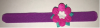 The recalled “slap bracelets” were included with "DreamWorks Trolls: It's Hug Time!" children's storybooks. The bracelet consists of an inner, flexible metal band wrapped in a purple fabric covering with a pink fabric flower. The ISBN for the book is 978-0-7944-3840-1 and is printed on the back of the book.