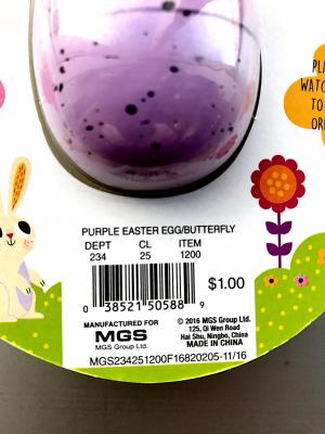 This recall involves Hatch & Grow Easter Eggs, Easter Grow Toys and Hatch Your Own Dino. Hatch & Grow Easter Eggs and Easter Grow Toys have model number 234-25-1200 on the back of the product’s packaging. Hatch Your Own Dino Egg has model number 234-09-0016 on the label inserted in the product’s packaging. The pink, blue, or purple Hatch & Grow Easter Eggs include a white bunny, brown bunny, or butterfly. The Easter Grow Toys include a yellow chick, brown bunny, or white bunny. The Hatch Your Own Dino Eggs are purple or yellow/green and contains one of eleven dinosaurs.