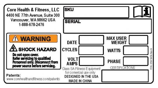Core Health & Fitness at 800-598-8541 from 6 a.m. to 5 p.m. PT Monday through Friday, email at support@corehandf.com or online at www.corehandf.com and click on “Recall Alert” for more information.