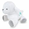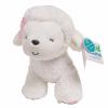 a white plush standing lamb with gray feet, mint stars appliqued on the lamb’s left side and a silver colored metal wind up post and handle on the lamb’s left side |