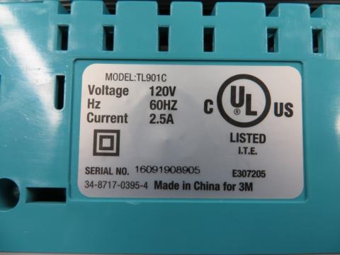 This recall involves Scotch thermal laminators that are white with teal accents. They are used to laminate documents such as artwork and photos. The laminators have “Scotch” printed on the front. They measure 14 inches by 3.8 inches by 2.75 inches. The model number TL901C is printed on a sticker on the bottom of the laminator. Only laminators with model number TL901C and teal accents are included in the recall. The two side ends, the bottom and the reverse switch on top of the laminators are teal.