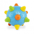 This recall involves Bruin Infant Wiggle Ball toys also called a giggle ball. The blue ball has textured bumps for gripping and has orange, green and yellow rubber knobs around the ball. The ball wiggles, vibrates and plays three different musical tunes. It has an on/off switch and requires 3 AA batteries to operate. The recalled wiggle balls have model number 5F6342E and Toys “R” Us printed on the product.