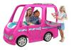 This recall involves children’s Power Wheels Barbie Dream Campers with model number FRC29 with a grey foot pedal. The recalled ride-on vehicles are hot pink with blue accents and have the Barbie logo printed on the back. They are battery-operated and have a play kitchen, a fold out grill and pretend campfire. The model number is printed on a label under the hood.
