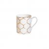 This recall involves the Fitz and Floyd Nevaeh White can mugs and Nevaeh White lattice can mugs in gold. The mugs are sold individually with UPC 742414338057 and UPC 742414391175 and part of a 4-piece dinnerware set with UPC 742414375946. The UPC numbers are printed on a sticker and placed on the bottom of the individually sold mugs. The mugs can hold 15 ounces, measure about 4 inches tall and about 4 inches in diameter, with a handle. Printed on the bottom of the Fitz and Floyd Nevaeh White can mug is Nevaeh White by Fitz and Floyd, Fine Bone China, Dishwasher/Microwave/Oven Safe. Printed on the bottom of the Fitz and Floyd Nevaeh White lattice can mug in gold is Nevaeh White by Fitz and Floyd, Fine Bone China, Dishwasher Safe.