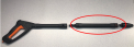 This recall involves the spray wand supplied with STIHL RE 90 Pressure Washers, part number 4951-012-4504. The pressure washer is gray and orange with “STIHL RE 90” printed on the front. The recalled spray wand measures 15 inches long and attaches to the spray gun. Interchangeable nozzles connect to the spray wand.