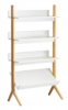 This recall involves Crate and Barrel Danish White and Natural Tall Bookcases (SKU 325982) and Danish Walnut and White Tall Bookcases (SKU 325943). The bookcases have four shelves and measure 60 inches tall by 32 inches wide. The bookcase has a two-tone white and wood finish. There is a label underneath the bottom shelf with Crate and Barrel, the SKU number and the name of the product.
