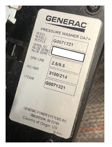 This recall involves Generac and DR Power brand electric start pressure washers with model numbers DPW3100DEN, DPW3101DEN, DPW3102DEN, G0071320, G0071321, G0071430 and G0071431. The electric start pressure washers have an electric start/stop button for the unit’s gasoline-powered engines, as well as a rechargeable battery used to power the button. The model and serial numbers are printed on a label located on the product’s frame. Consumers can check specific unit type, model number and serial number location information at www.generac.com/service-support/product-support-lookup. This recall involves only the following Generac and DR Power brand electric start pressure washers: