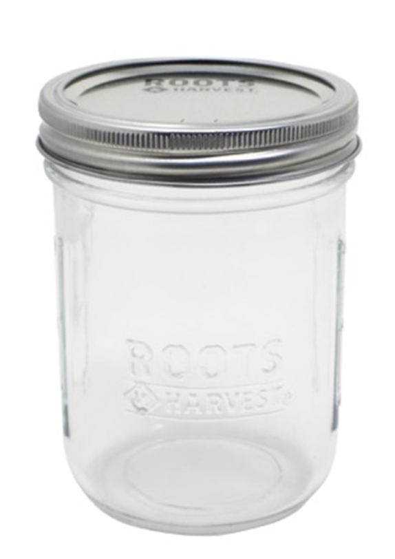 This recall involves Wide Mouth Pint Canning Jars that were sold in 12-packs in a cardboard sleeve shrink wrapped in clear plastic. The jars are clear glass with the Roots & Harvest brand molded on each jar. The jars have a metal lid and screw on type band. These jars are used for canning food.