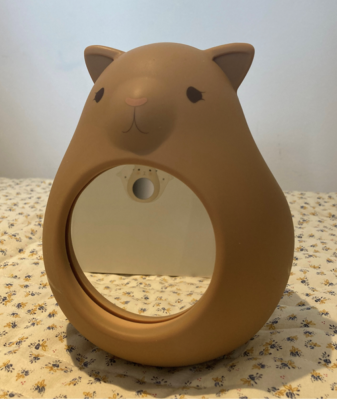 The mirror can come out of the silicone bear cover if pushed, exposing sharp edges of the mirror, posing a laceration hazard to children.