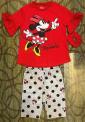 Children’s 2-piece set for toddlers. The set includes red polyester short sleeve top with Minnie Mouse print and gray shorts with black polka dots and Minnie Mouse heads.