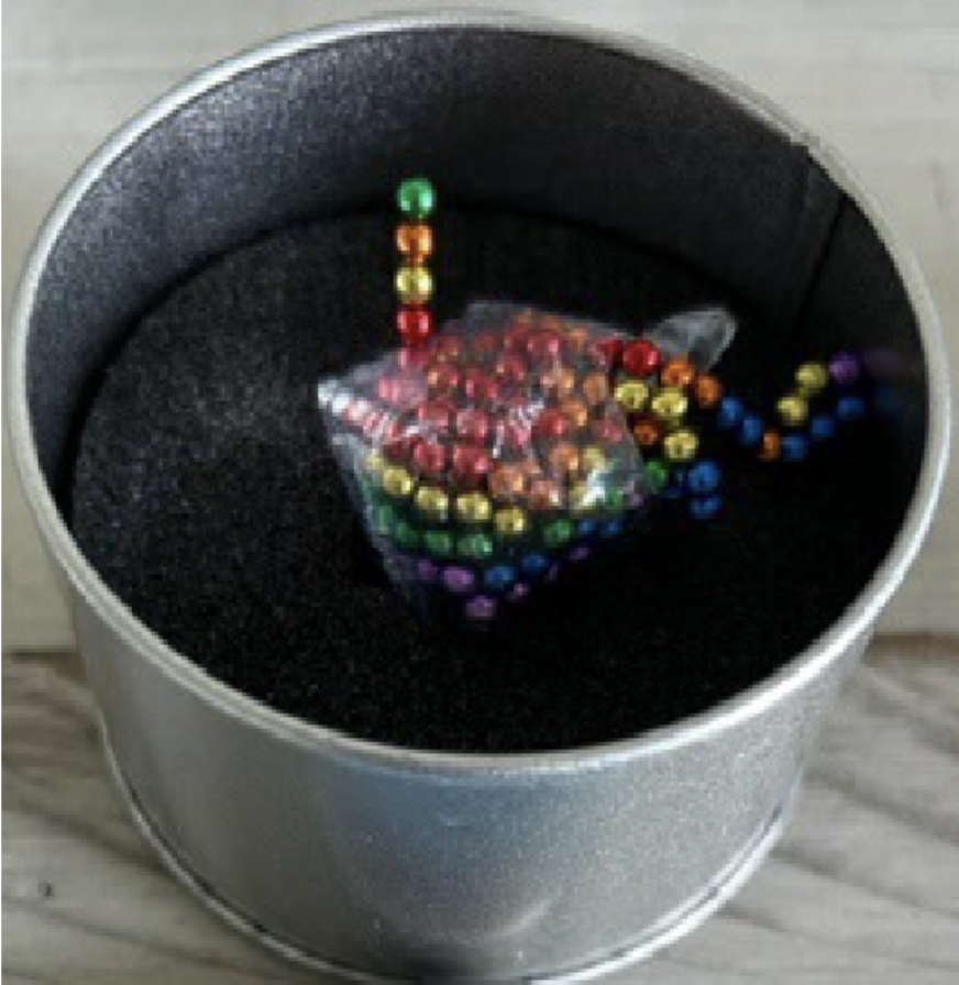 The magnetic ball sets were sold online at Amazon.com for about $25. The sets were sold in a set of multi-colored magnetic balls in the form of a cube. The sets were sold encased in a clear plastic case in a portable tin storage box.