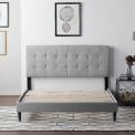 This recall involves Lucid Platform Beds with an upholstered square tufted headboard in Twin, Full, Queen, King and Cal-King sizes. They were sold in beige, black, charcoal, cobalt, pearl, and stone colors. The recalled beds have wooden support beams and wooden support legs and a white federal law label with “Made For: CVB INC, 1525 W 2960 S, LOGAN, UT 84321” printed on it. The federal law label is located on the backside of the headboard.