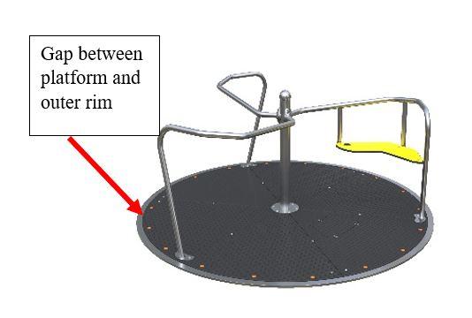 The space between the rotating platform and the stationary outer rim can leave a gap that narrows too much, posing a crushing hazard to children.