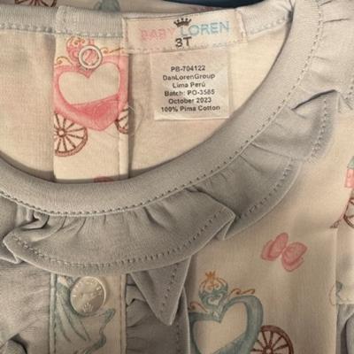 This recall involves four different styles of Baby Loren Morning children’s 100% cotton loungewear dresses. The loungewear was sold in floral tulips, princess and castle and unicorn and butterfly prints and in sizes 2T, 3T, 4T, 5Y and 6Y. The Baby Loren logo, the size, “October 2022” or “October 2023” and a batch number ending in 3465, 3585, 3599 or 3569 are printed on sewn-in neck labels.